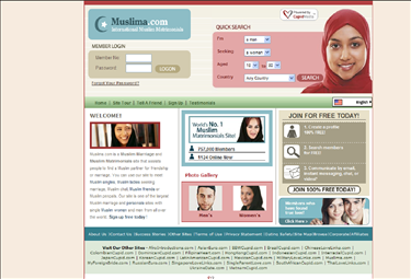 ‘Ons ledenbestand is ruim 4,5 miljoen leden groot, en zij komen uit landen zoals de VS, Europa, Azië, Midden-Oosten en veel andere landen. Het is onze bedoeling om u te helpen uw perfecte Islamistische match te vinden, waar op de wereld die ook maar woonachtig is.’ – Muslima.com